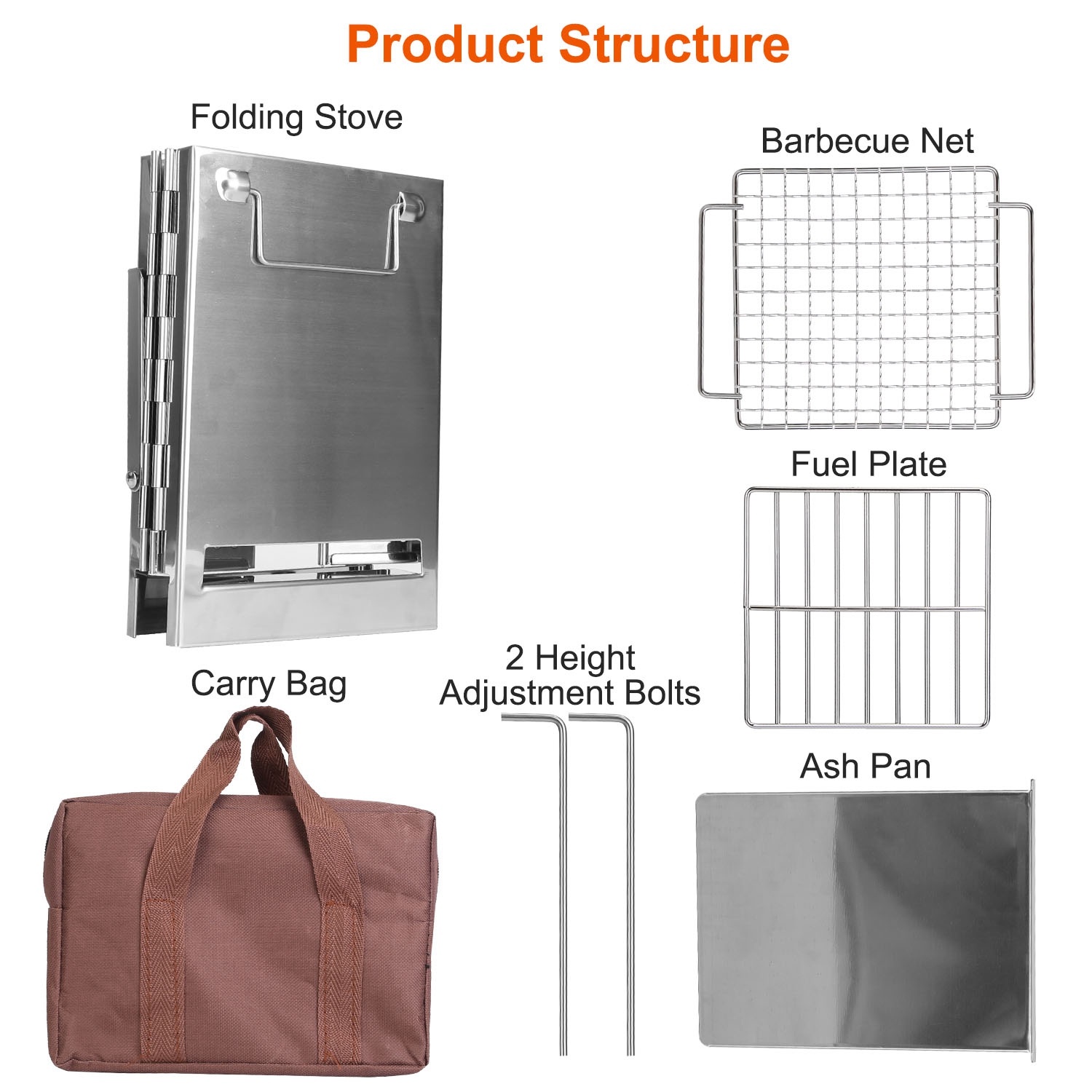 *Easy Installation*:Just expand the folded stove and place it on flat ground,insert the ash pan into the bottom slot and the included bolts into the side holes,then put the fuel plate on the 2 bolts,finally put the barbecue net on the top. Just take a few minutes to complete,you have a camping stove to make your favorite meals. Please peel off the blue protection films before use.