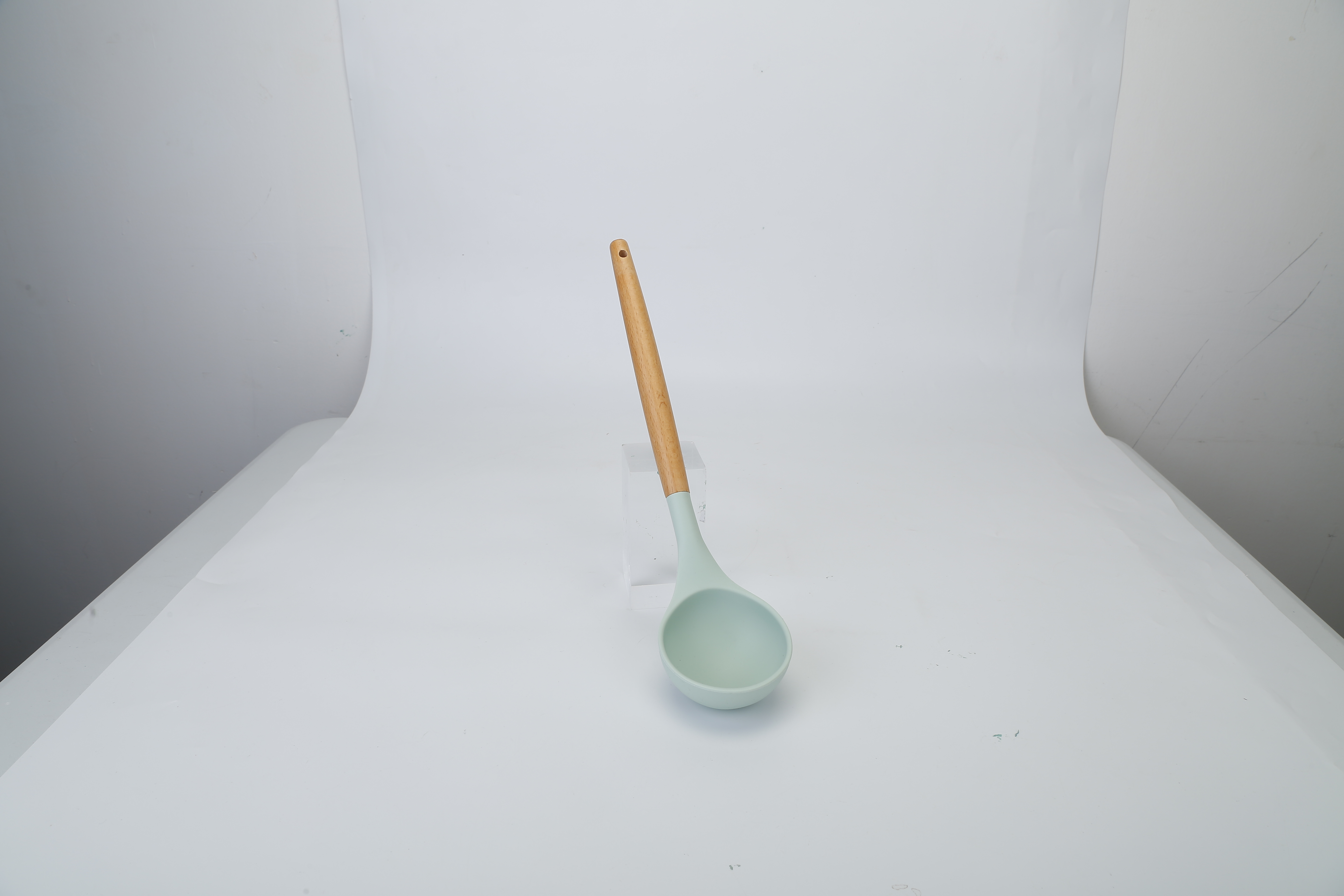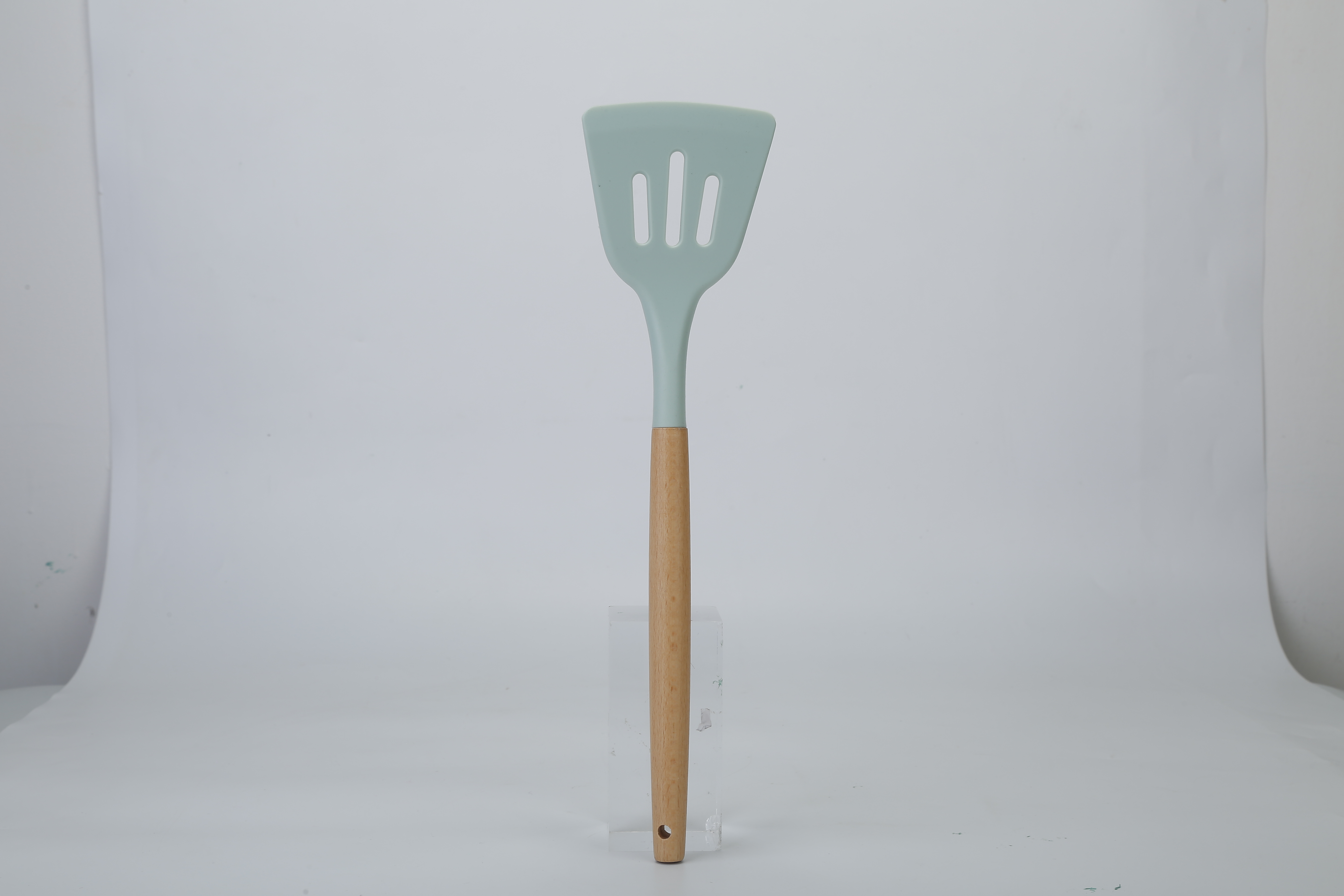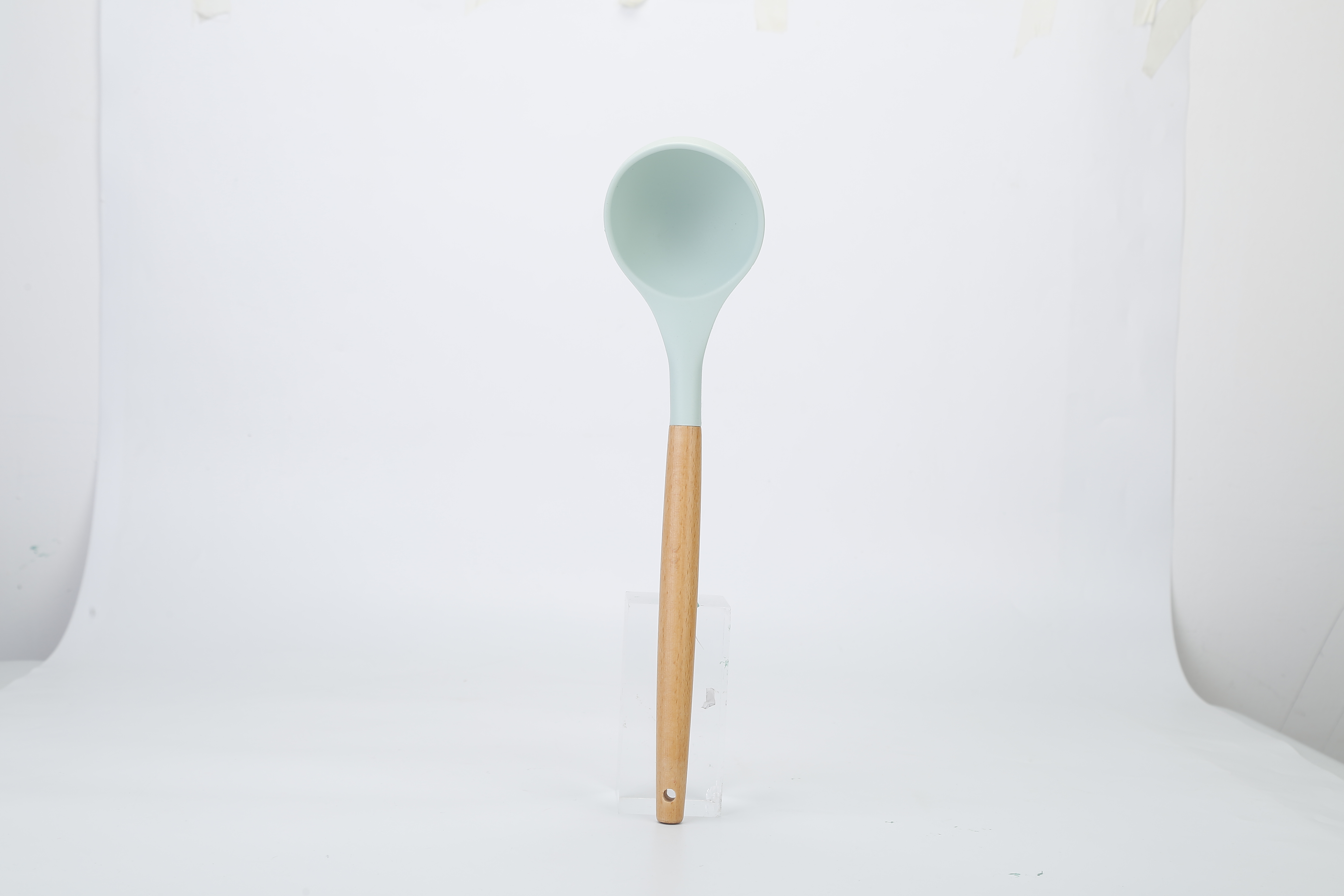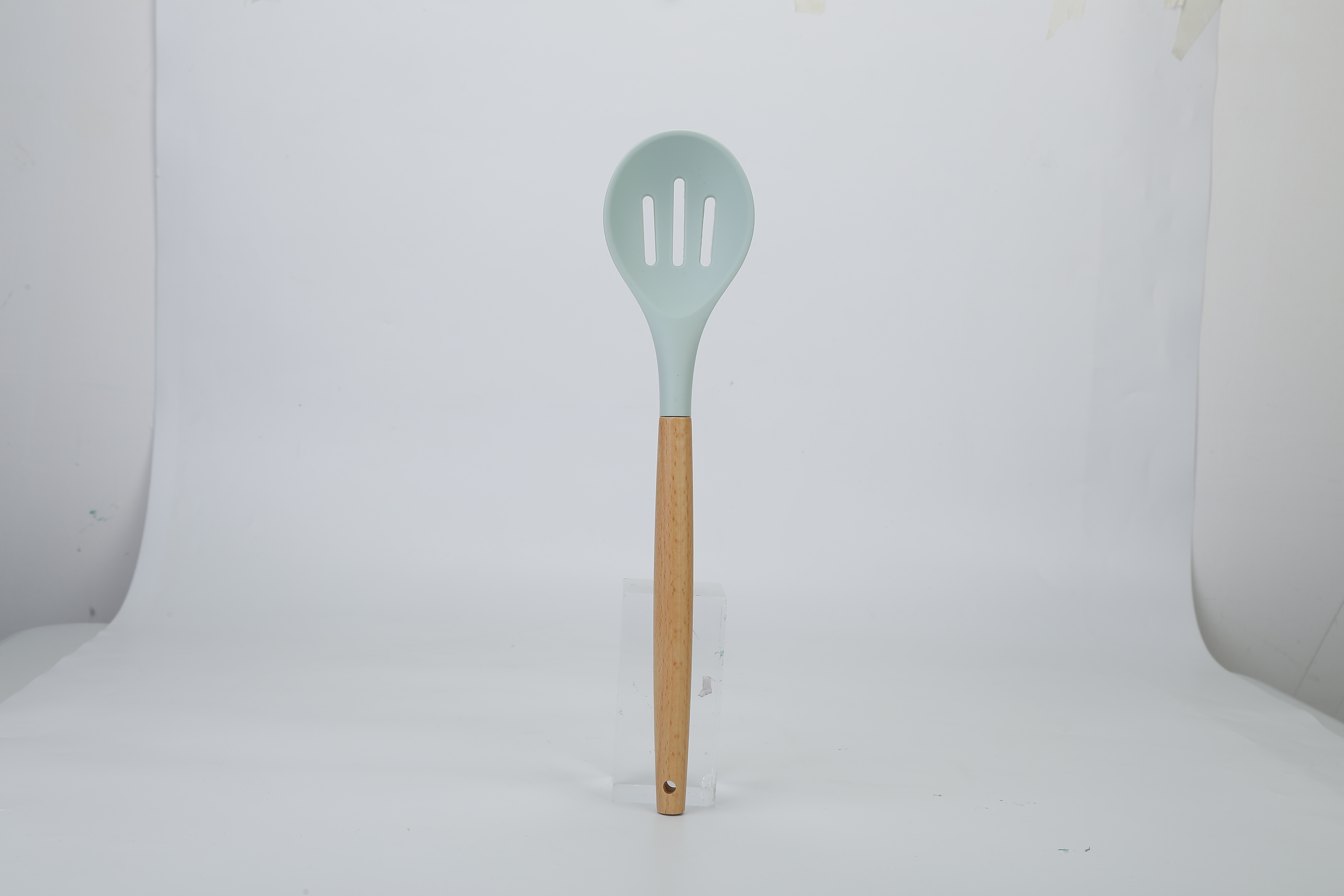 Materials: Food-grade Silicone; Wood Handle; Carbon Steel Inner; PP Kitchen Tool Holder; Stainless Steel