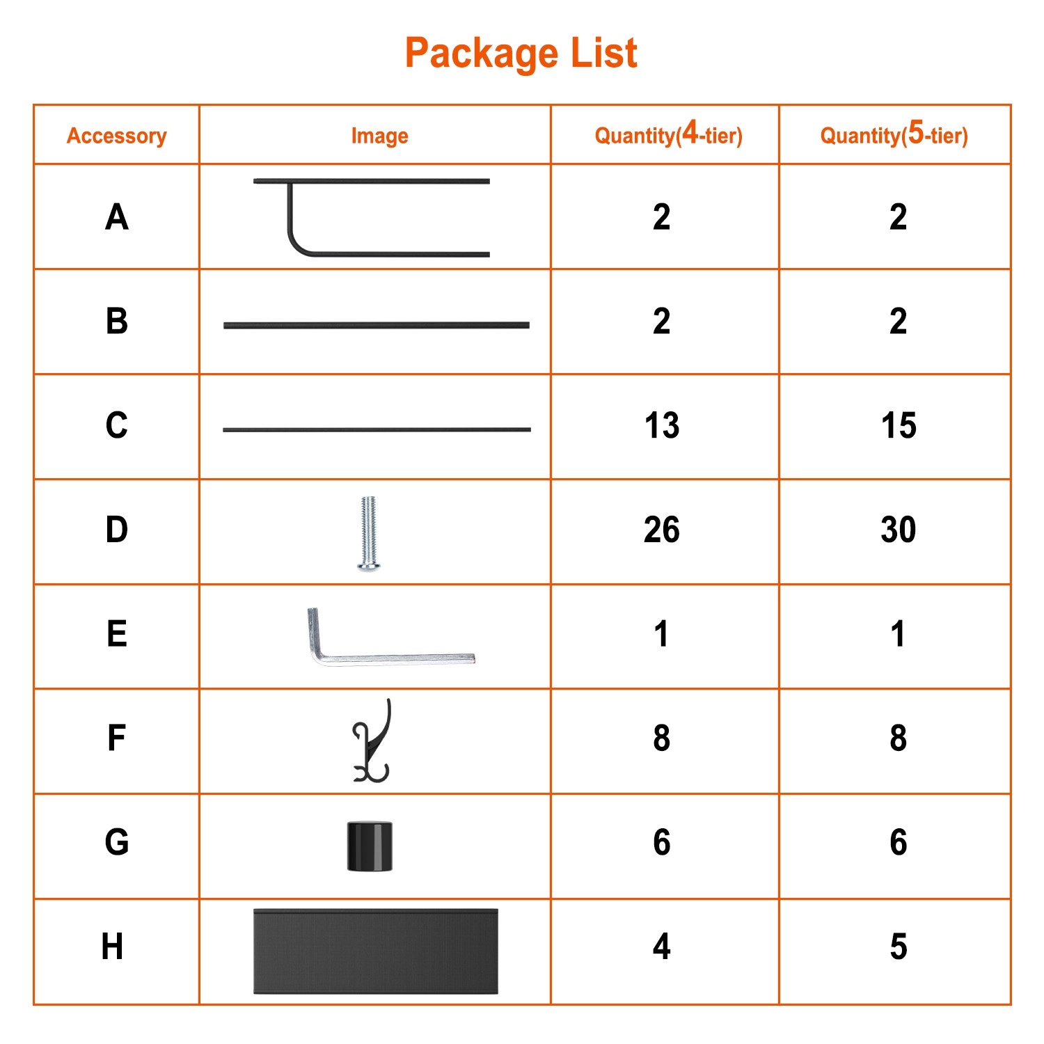 Package Size(5 Tier): 96*27*6cm/37.79*10.62*2.36in