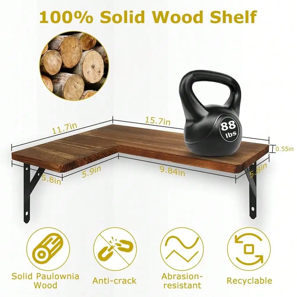 Sturdy Wooden Shelves:Made of premium paulownia wood,it’s corrosion- and abrasion-resistant,lightweight yet sturdy to enough to withstand up to 88lbs. Rustic wooden texture also adds a touch of natural and retro style to your home,perfectly blending in with most decoration styles.